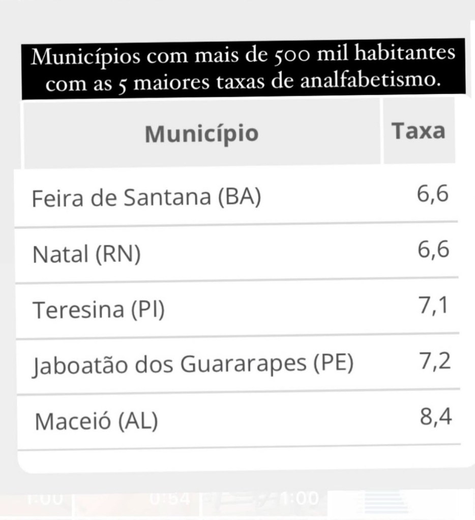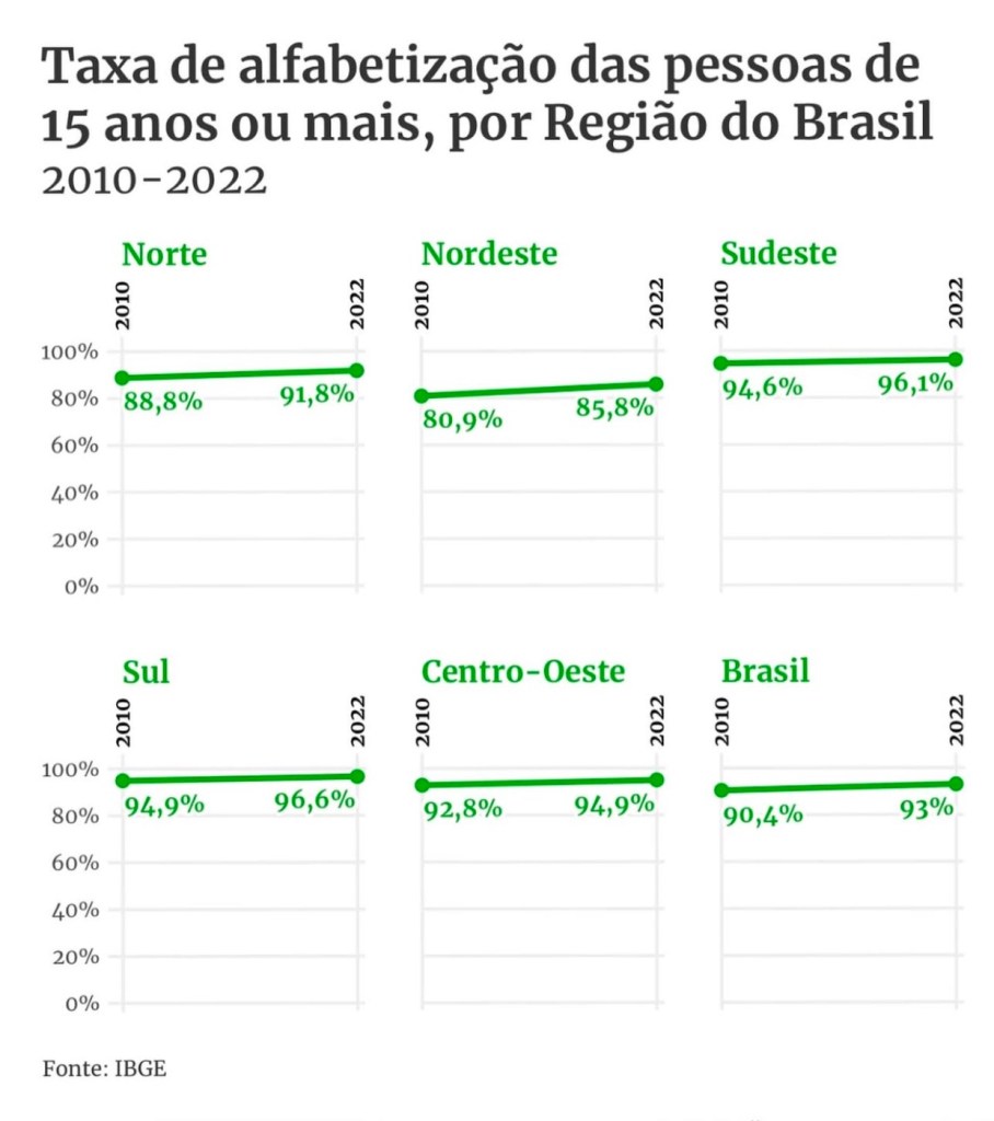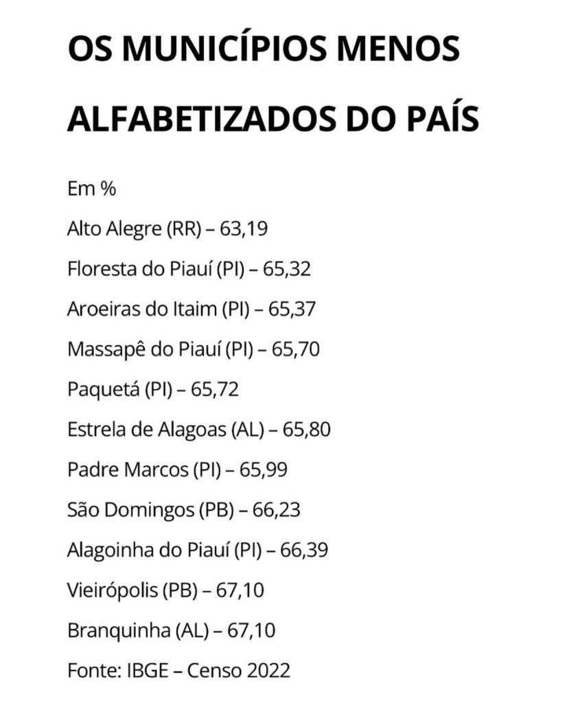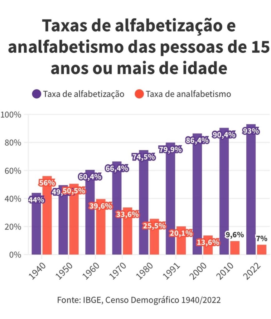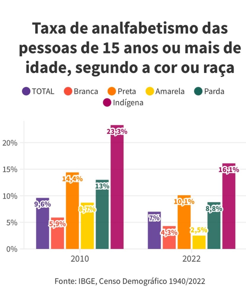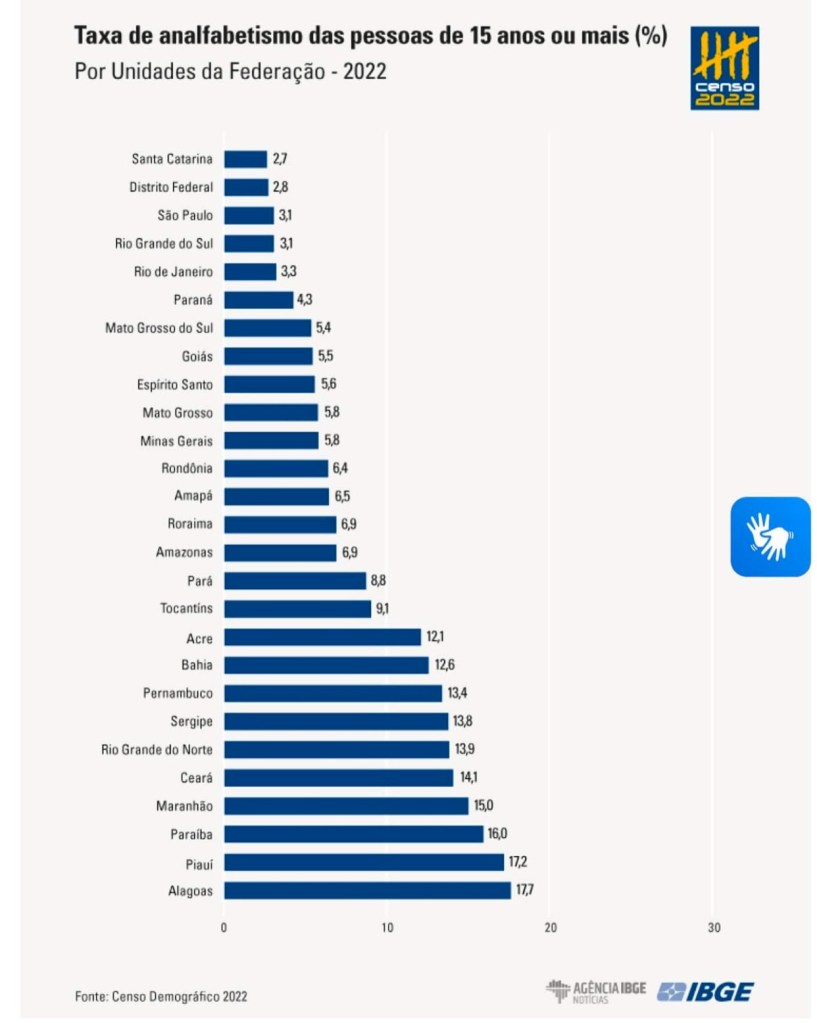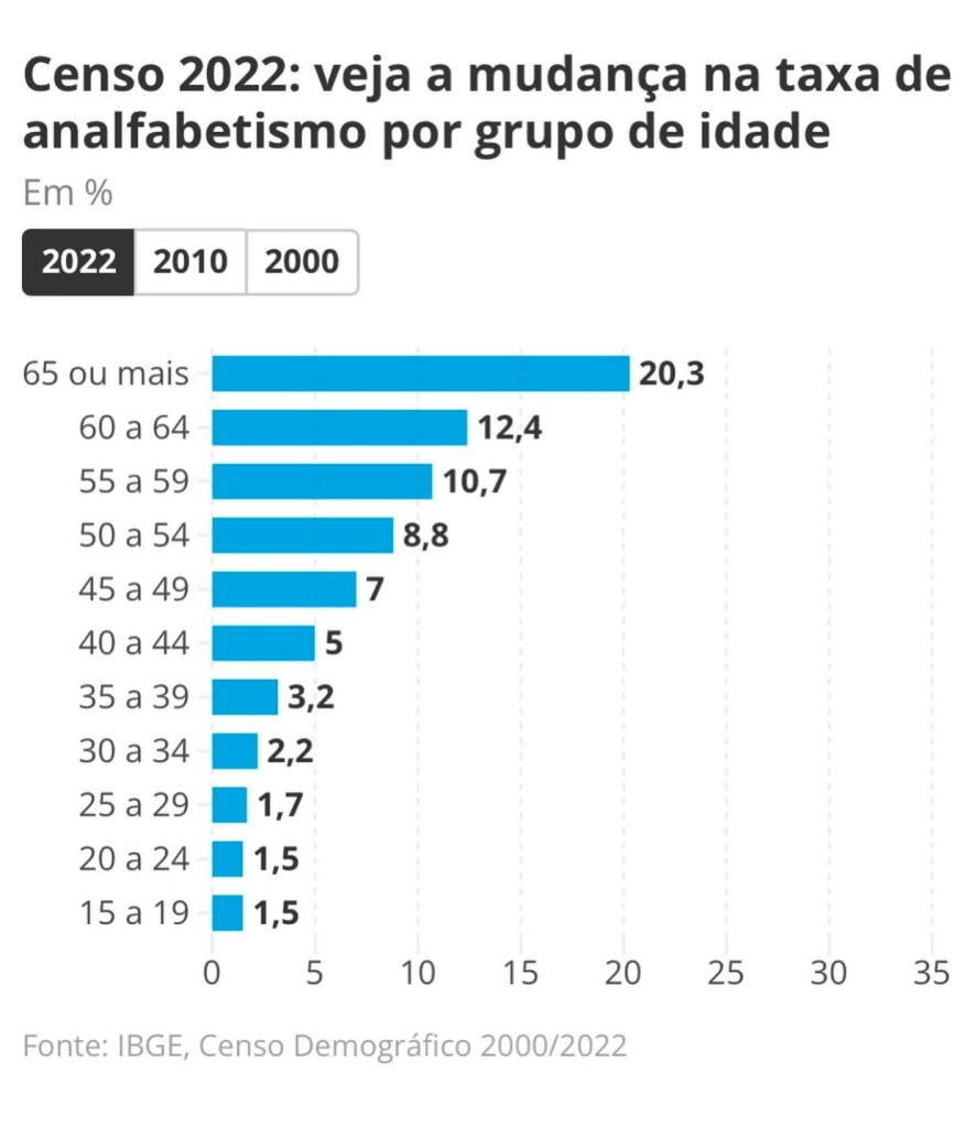 O Brasil ainda tem 11,4 milhões de pessoas analfabetas com 15 anos ou mais o que representa 7% da população dessa faixa etária. A região Nordeste tem o dobro da média nacional: 14,2% e continua a se destacar, negativamente, entre as regiões. O RN tem taxa de 13,9% de analfabetos. Natal é um dos cinco municípios – com mais de 500 mil habitantes – com taxas mais altas de analfabetismo. Os dados são do Censo Demográfico- 2022 que foram divulgados hoje e eu os comentei para o jornalismo da Band (local e nacional).