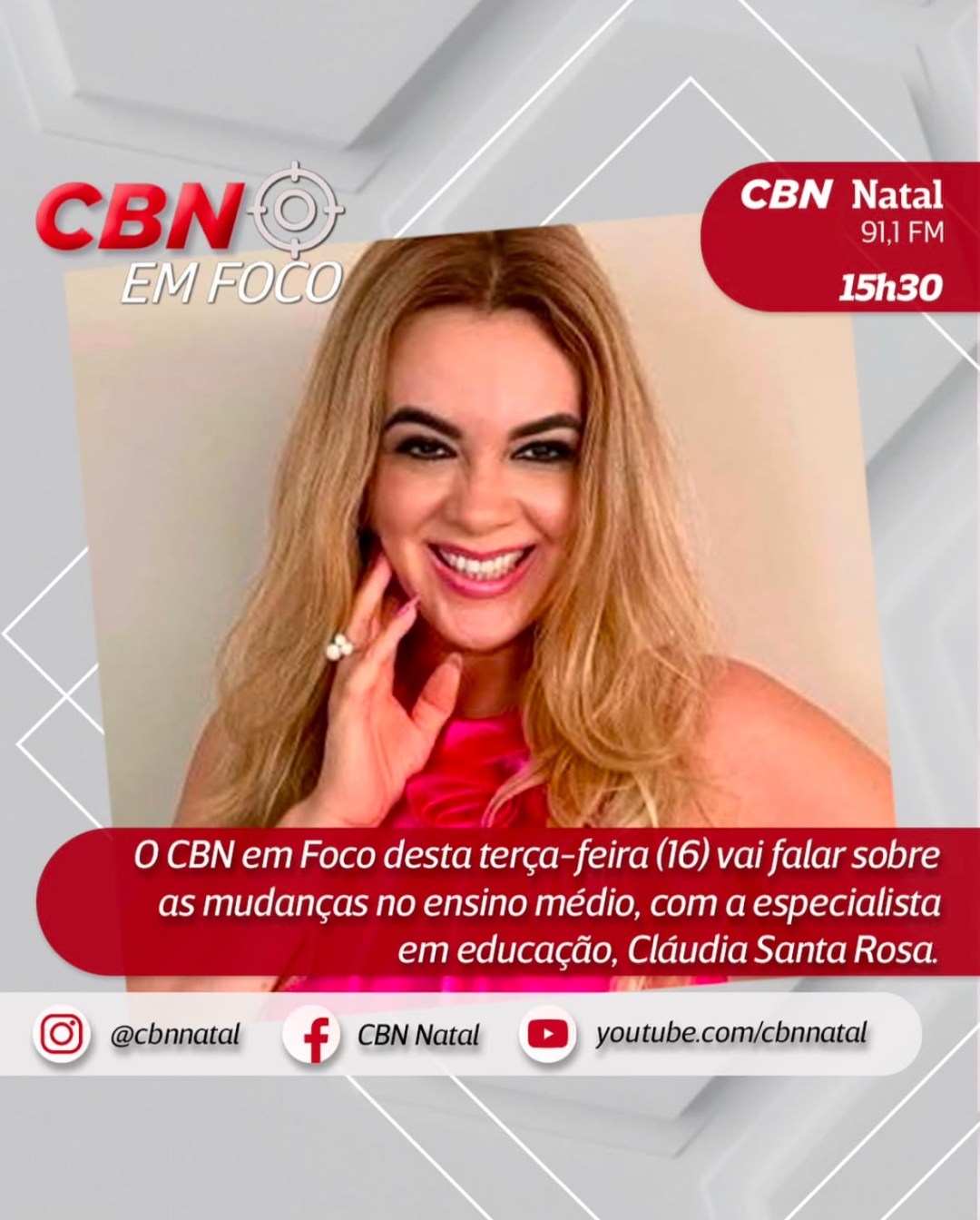 Hoje participei do programa CBN em Foco, da CBN Natal, apresentado pelo Jornalista Pedro Neto e Duda Medeiros. Fui convidada para tratar sobre as mudanças no Novo Ensino Médio brasileiro e as repercussões no Rio Grande do Norte. Foi uma oportunidade para discorrer um pouco sobre o trabalho que realizamos na secretaria de educação do … Continue lendo Mudanças no Novo Ensino Médio