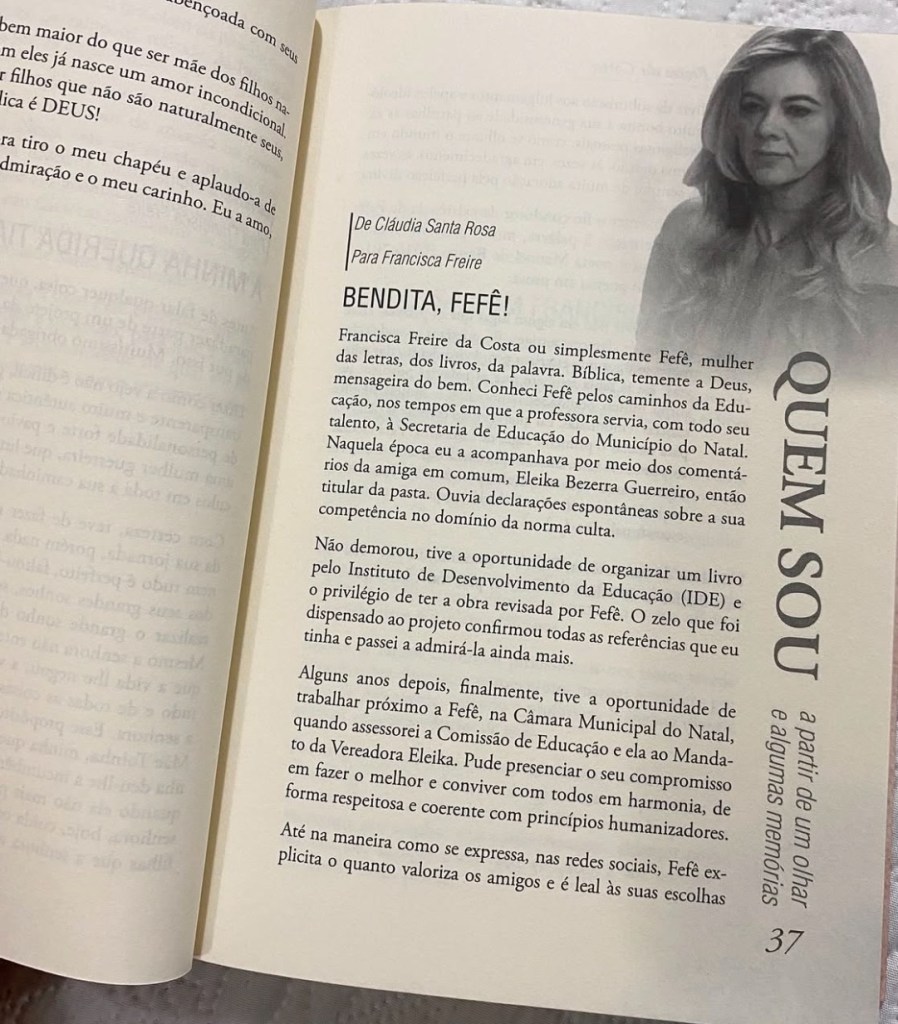 Noite linda, de profunda emoção. Lançamento do livro “Quem Sou, a partir de um olhar e algumas memórias”, da estimada professora Francisca Freire da Costa, nossa querida Fefê.